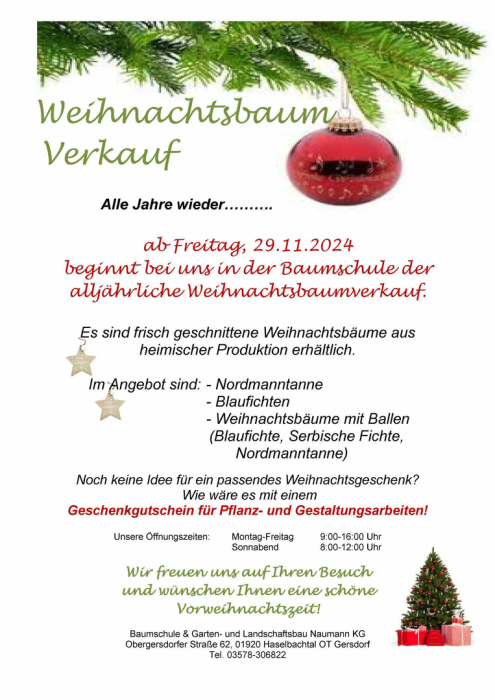 Verkauf von frisch geschnittenen Weihnachtsbäumen aus eigener Produktion